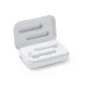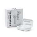 Auriculares inalámbricos Bluetooth 5.0 con estuche de carga. Elegante acabado en blanco brillante. Panel de control con tecnología táctil integrado en auricular. Función manos libres. Estuche con batería recargabla y tapa imantada. Cable incluido. Presentación en caja diseño.