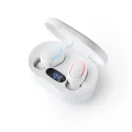 Auriculares inalámbricos Bluetooth 5.0 con estuche de carga. Indicador de carga LED en el estuche y botón multifunción integrado en ambos auriculares. Función manos libres. Estuche con batería recargable y tapa. 3-4 horas de duración. Cable incluido. Presentación en caja diseño. Plástico