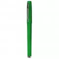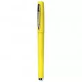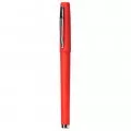 Bolígrafo tipo roller con clip metálico y punta de acero. Cuerpo de vivos colores con tacto suave en acabado goma. Carga jumbo de 0,7mm con tinta azul. Plástico y metal.