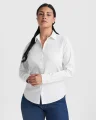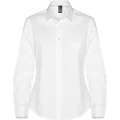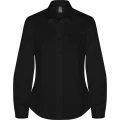 Camisa Moscu mujer de manga larga de mujer en tejido stretch · Cuello entretelado · Pinzas delanteras de pecho y en espalda · Tapeta central con botones a la vista · Puños con dos botones · Canesú trasero · Bajo redondeado.