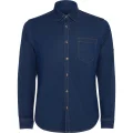 Camisa Lujan vaquera manga larga con trabilla ajustable.· Tejido stretch.· Cuello camisero.· Costura adelantada en hombros y canesú trasero.· Bolsillo en pico pecho izquierdo.· Puños con abotonadura doble y pinzas al lado de la tapeta de puño con un botón más pequeño.· Bajos redondeados.