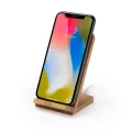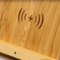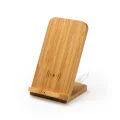 Cargador inalámbrico con cuerpo de bambú natural. Coloque su smartphone sobre él y déjelo cargar. Compatible con modelos con tecnología inalámbrica. DC5V. Cable incluido. Presentación en caja diseño eco. Manual de instrucciones disponible en 4 idiomas: español, inglés, francés e italiano.