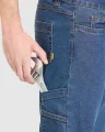 Pantalón vaquero multibolsillos. · Cierre con cremallera de metal y botón. · Cinturilla con trabillas. · Un bolsillo lateral izquierdo con fuelle, tapeta y cierre de velcro. · Bolsillo lateral izquierdo con cremallera. · Doble bolsillo lateral derecho estrecho. · Costuras a contraste. 78% algodón / 20% poliéster / 2% elastano, 370 g/m² (11oz).