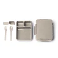Descripción:Fiambrera con capacidad para 1,3L elaborada en PP con tres compartimentos independientes de diferentes tamaños, que mantiene los alimentos separados en todo momento. Además, estos espacios forman parte de un compartimento principal extraíble que deja un espacio en la parte inferior para guardar un tenedor y una cuchara que van incluidos. Cuenta con una tapadera abatible con cierre antigoteo gracias al recubrimiento de silicona en su interior. Este mecanismo permite que los alimentos permanezcan en condiciones óptimas durante su transporte. Además, en su interior cuenta con un compartimento adicional independiente para poder llevar salsas u otros condimentos.