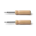 Descripción:Destornillador elaborado en acero inoxidable con mango redondo en madera. Cuenta con un sistema de puntas diferentes intercambiables de fácil montaje. Estas puntas incluyen destornillador de estrella y destornillador plano, ambos en dos tamaños diferentes.