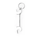 Llavero con forma de llave inglesa elaborado en metal con función abridor.