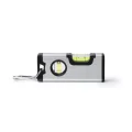 Descripción:Nivel de burbuja elaborado en aluminio reciclado. Cuenta con dos viales, uno para medición de nivel vertical y otro, horizontal. Incorpora base magnética, perfecto para fijarlo en superficies metálicas. Además, incluye mosquetón, ideal para transportar a cualquier parte.