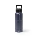 Descripción:Bidón elaborado en acero inoxidable reciclado 304 de doble pared con superficie con parte inferior en diseño biselado. Con capacidad de 500 ml. Cuenta con un tapón automático de apertura mediante botón incorporado en su la base de éste. Cuenta con asa de transporte incoporada con un original diseño.