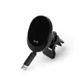 Cargador inalámbrico de coche para smartphone con potencia de salida de hasta 15W. Cuenta con cable retráctil Tipo C incorporado con adaptador a USB. Incluye anillo magnético para el dispositivo y accesorio para rejilla de ventilación. Presentación en caja diseño.