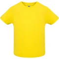 Camiseta Baby. Los más peques también merecen ir a la última. La camiseta de manga corta Baby viene confeccionada con tejido en galga fina y acabado compactado, lo mejor para su piel. Además, cuenta con una abertura en el hombro con corchetes. Roly también acompaña a los más pequeños.