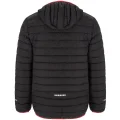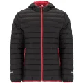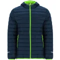 Chaqueta deportiva acolchada con relleno tacto pluma: 1. Cremallera frontal invertida a contraste con protector de barbilla y tirador. 2. Capucha ajustada fija. 3. Bolsillos laterales a contraste con cremallera invertida y tirador. 4. Detalles reflectantes en mangas y espalda. 5. Patronaje del bajo 4 cm más largo que el modelo NORWAY. 6. Capucha, puños y bajos con ribete elástico a contraste. 7. Incluye bolsa de transporte. *Etiqueta removible. * Modelo a prueba de viento. * Resistente al agua. * Disponible en tallas infantiles. * Exterior: 100% poliéster, 300T. Forro: 100% poliéster. Guata: 100% poliéster, efecto pluma. 290 g/m².