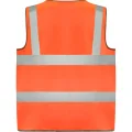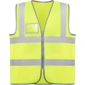 Chaleco de alta visibilidad con cremallera central. Dos bandas reflectantes horizontales en el pecho y bandas verticales en los hombros. Bolsillo en pecho derecho transparente para identificación. 100% poliéster · Etiqueta removible. ·Certificación UE según las normas: EN ISO 13688:2013 Y EN ISO 20471:2013/A1:2016 · Clase II.