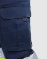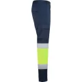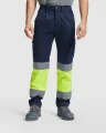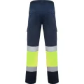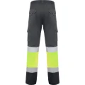 Pantalón largo multibolsillos de alta visibilidad. · Tejido cómodo y flexible. · Cintura ajustable elástica en la parte trasera. · Dos bolsillos frontales. · Dos bolsillos traseros con tapeta y cierre de velcro. · Dos bolsillos laterales de fuelle con tapeta y cierre de velcro. · Combinado en dos colores y cintas reflectantes. 65% poliéster / 33% algodón / 2% elastano, sarga de 250 g/m² *Certificación UE según las normas: EN ISO 13688:2013 Y EN ISO 20471:2013/A1:2016.*Clase I.