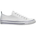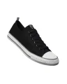 * Zapatilla clásica en lona con suela de goma blanca decorada con líneas en color. * Ojales laterales de ventilación, punta de goma y cierre de cordones. * 100% algodón CANVAS.