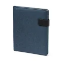 Carpeta A4 multiusos de RPET 600D vigoré con cierre magnético. Incluye bloc extraíble de 30 hojas a una raya. 4 compartimentos interiores y soporte para bolígrafo.